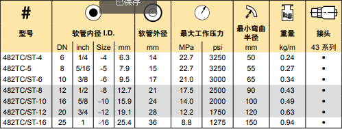適用介質:石油基液壓油,水乙二醇,潤滑油,空氣和水。用于1.7MPa以上的空氣時,軟管需針刺。