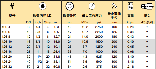 適用介質(zhì):石油基液壓油,水乙二醇,潤滑油,空氣和水。用于1.7MPa以上的空氣時,軟管需針刺。