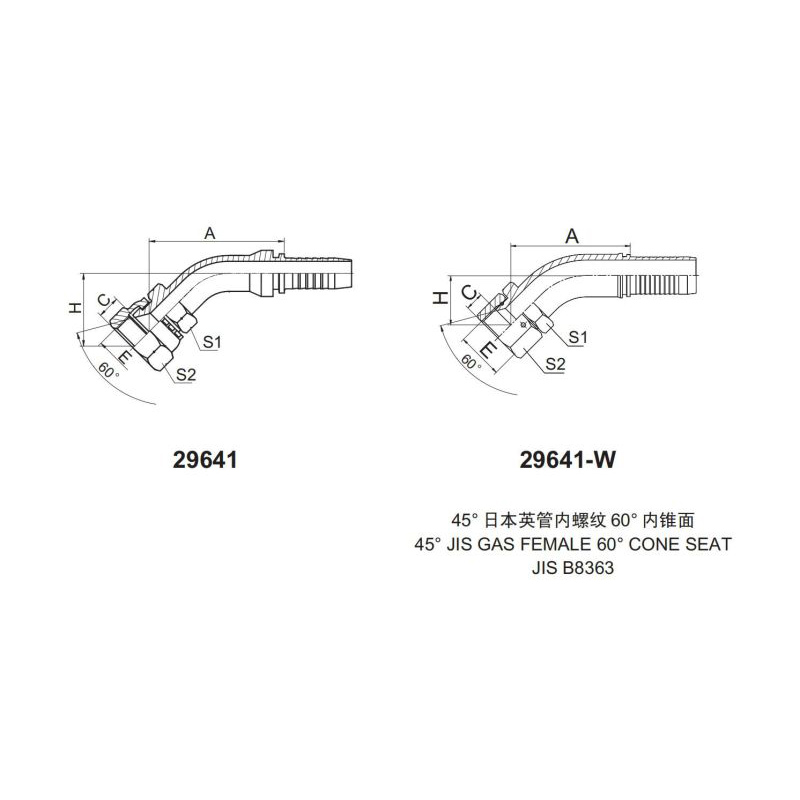 扣壓式接頭 29641--29641-W 45度日本英管內(nèi)螺紋 60°內(nèi)錐面 45° JIS GAS FEMALE 60° CONE SEAT JIS B8363